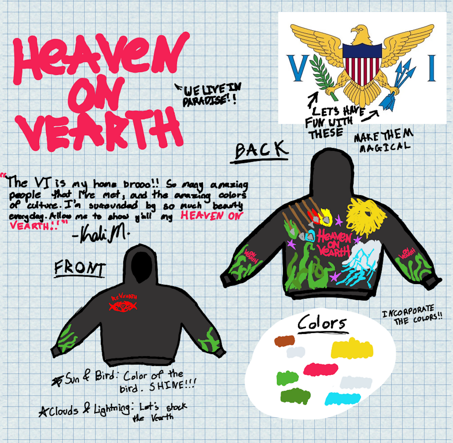 United States Virgin Island Flag Influence: The Heaven on Vearth Collection draws inspiration from the vibrant colors and symbolism of the US Virgin Island Flag.